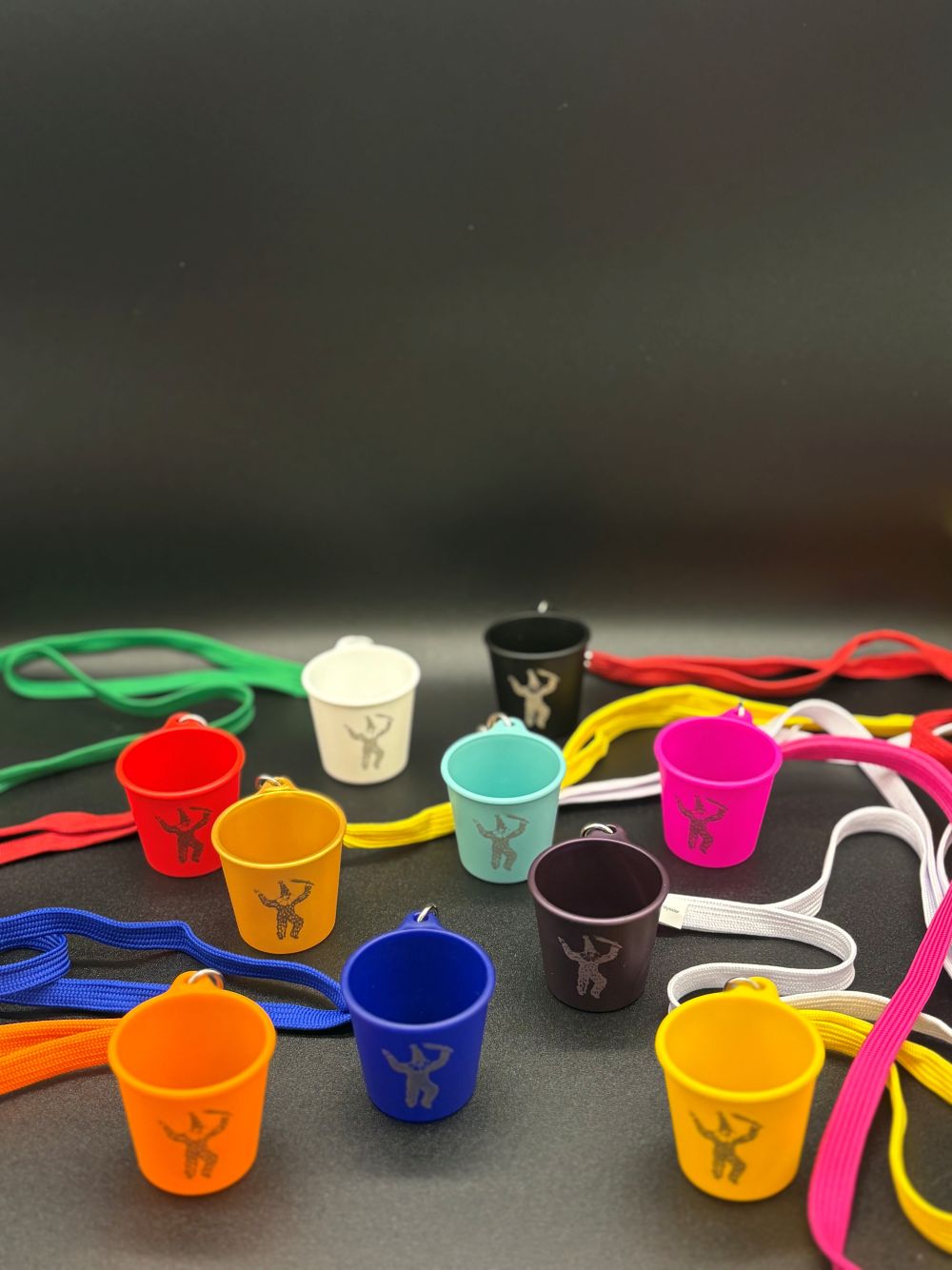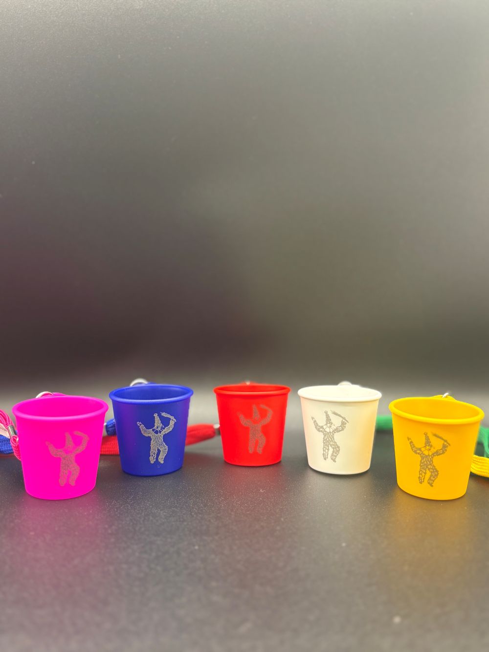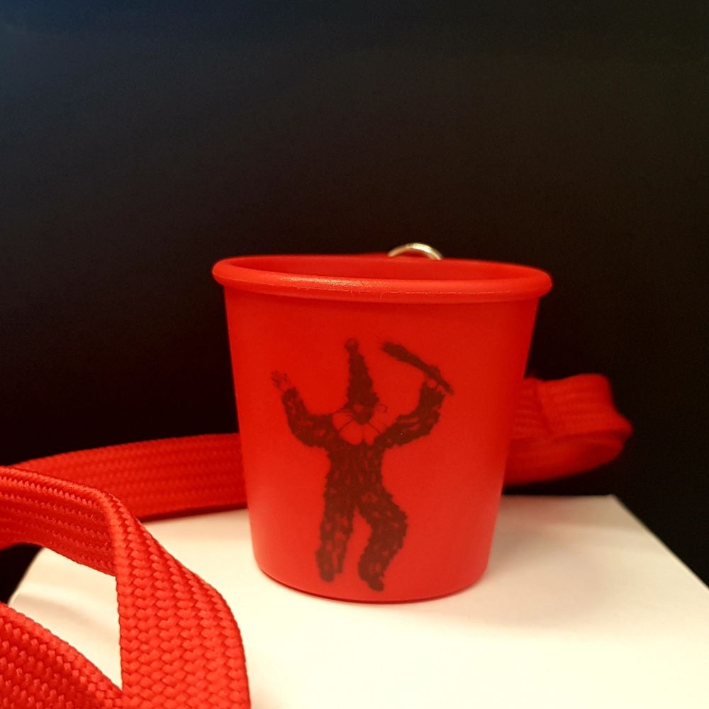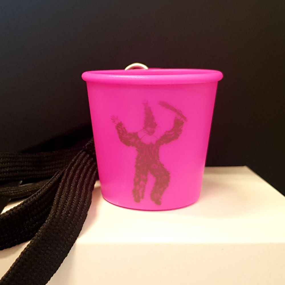 Schnapsbecher aus Kunststoff inkl. Umhängeband in verschiedenen Farben erhältlich